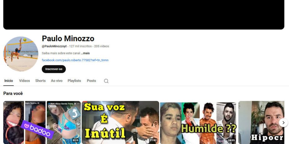 Canal no YouTube à Venda – 127 mil inscritos Paulo Minozzo (Entretenimento e Variedades) – não monetizado
