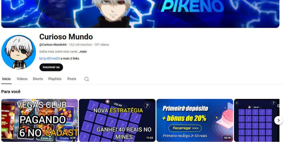 Canal no YouTube à Venda – Curioso Mundo (Gaming e Apostas) 13 mil inscritos- não monetizado