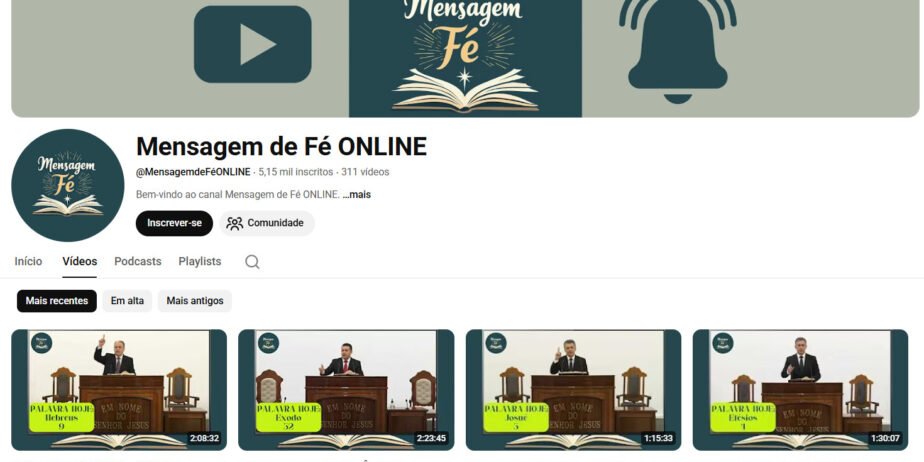 Canal no YouTube à venda – Mensagem de Fé ONLINE (Português) – Gospel e Conteúdo Religioso (5 mil inscritos)
