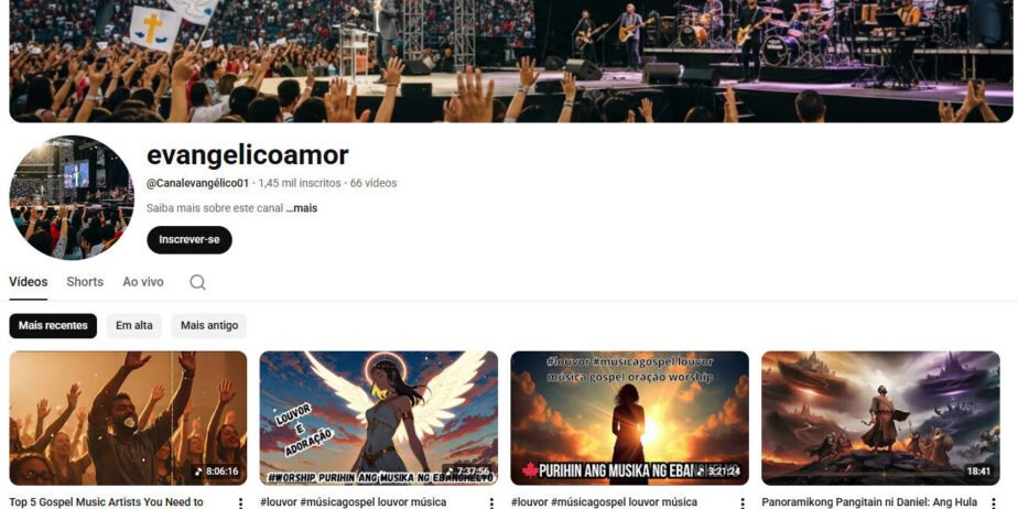 Ideal pra quem quer investir em um canal já posicionado no nicho de música gospel e louvor internacional.