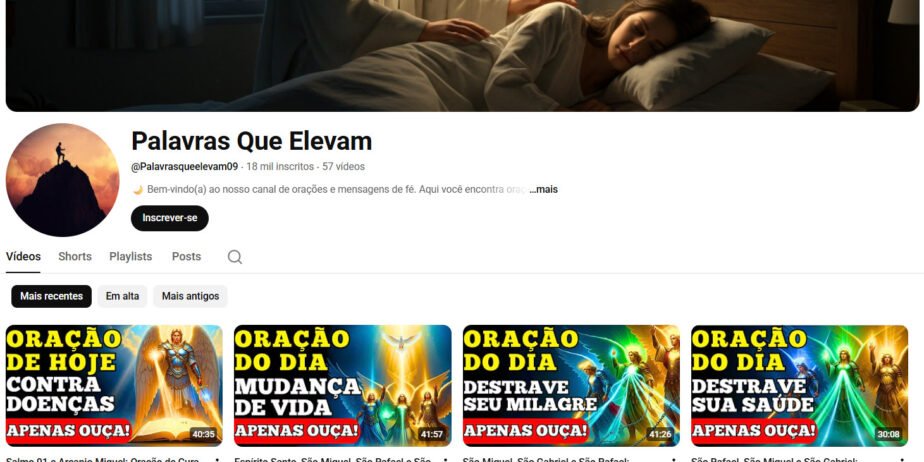 Canal em língua portuguesa dedicado ao nicho Gospel e de espiritualidade, com uma base de 18 mil inscritos e 57 vídeos publicados. O conteúdo é focado em orações poderosas, salmos e mensagens de fé destinadas à cura, mudança de vida e proteção espiritual.