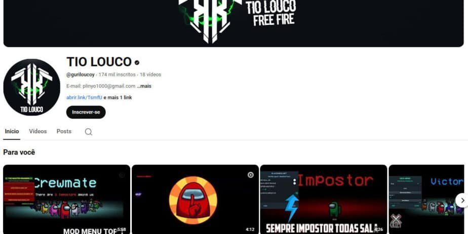 Canal no YouTube à Venda – TIO LOUCO (Gaming e Free Fire/Among Us) 174 mil inscritos – Não monetizado