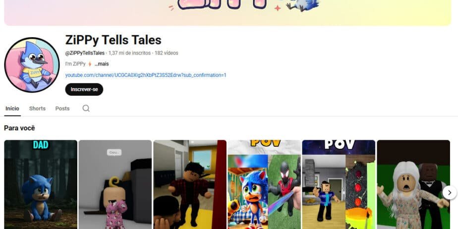 Este canal possui uma audiência massiva de 1 milhão de inscritos e é focado no nicho de entretenimento infantil e storytelling, utilizando personagens populares como Sonic e avatares de Roblox. Com um acervo de 182 vídeos, o conteúdo foca em narrativas curtas e envolventes, explorando temas de amizade, aventuras e situações curiosas do imaginário infantil. Apresentando uma identidade visual extremamente carismática, com o personagem ZiPPy, o canal já consolidou um alcance global impressionante, acumulando milhões de visualizações em suas produções. Representa uma oportunidade de altíssimo nível para quem deseja gerir um projeto de grande escala e influência na plataforma.