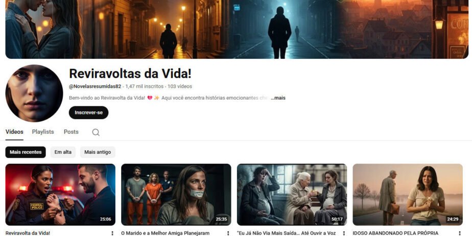 O conteúdo é bem produzido em formato de vídeos-histórias (short stories ou novelas curtas), com mais de 1 mil inscritos e 103 vídeos publicados, atraindo um público segmentado por temas de forte apelo emocional.