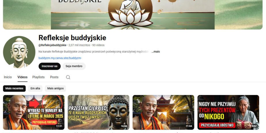 Explore novos caminhos com o canal Refleksje buddyjskie, um espaço sereno dedicado à partilha de sabedoria antiga, meditação e ensinamentos para acalmar a mente e atrair prosperidade. A conta possui uma base de 2 mil inscritos e um histórico de 93 vídeos publicados.