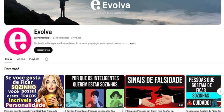 Adquira o canal Evolva, um projeto dedicado ao autoconhecimento, psicologia e sucesso pessoal. Com uma base sólida de 16 mil inscritos e 37 vídeos publicados, o canal foca em conteúdos que ajudam a audiência a alcançar a sua “melhor versão”.
