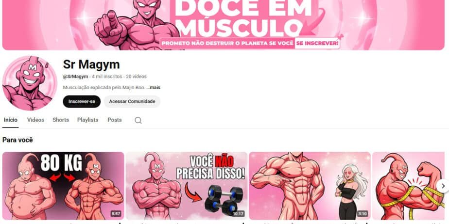 Adquira o canal Sr Magym (não monetizado), um projeto criativo que utiliza uma temática única para explicar o mundo da musculação. A conta possui uma base de 4 mil inscritos e um histórico de 20 vídeos publicados.