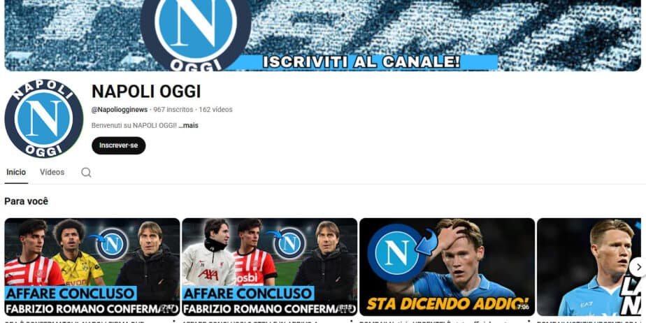 YouTube à Venda – 967 inscritos – Notícias do Napoli e Futebol Italiano