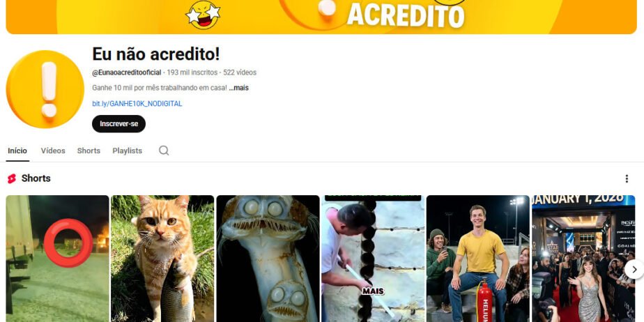 Canal de grande porte com 193 mil inscritos e um histórico consistente de 522 vídeos publicados. O conteúdo é focado em curiosidades extremas, fatos surpreendentes e vídeos de entretenimento com alto potencial de compartilhamento.